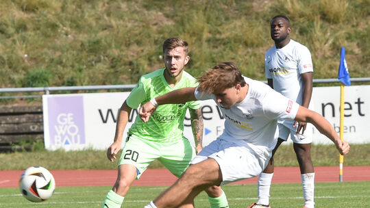 Feine Schusstechnik: Malik Schäfer (in Aktion) könnte Deniz Darcan als Torschützen bei der Kreuznacher Eintracht (weiße Trikots), die dringend einen Dreier benötigt, vertreten. Klaus Castor