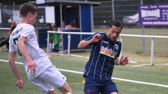 Wollte eigentlich seine Knieprobleme auskurieren, stellte sich aber in Rüssingen in den Dienst der Mannschaft: Arash Sadeghi (blaues Trikot) spielte, obwohl er wochenlang nicht trainiert hatte. Klaus Castor