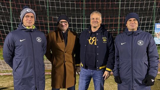 Arbeiten in Zukunft eng zusammen bei der SG Eintracht Bad Kreuznach: der neue Co-Trainer Sandro Schlitz (von links), Mario Spreitzer (Sportlicher Leiter), Karsten Theis (Vizepräsident) und Cheftrainer Thorsten Effgen. Aleksandar Kuzmanovski