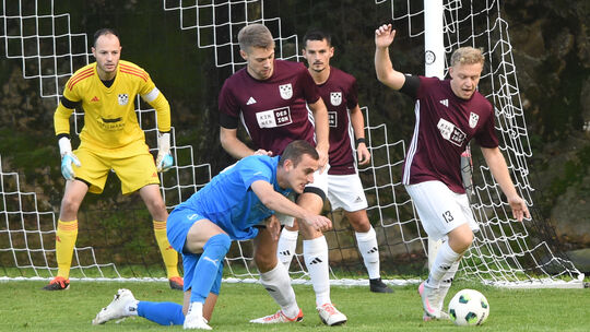 Die Spieler des SV Winterbach (weiße Hosen) verteidigten kollektiv und klasse das Tor von Kapitän Samuel Keßler. Klaus Castor