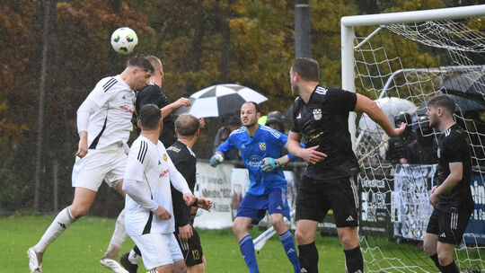 Die Hintermannschaft des SV Winterbach (schwarze Trikots, im Duell mit der SG Meisenheim) wird inklusive Torwart Samuel Keßler im Mittelpunkt stehen beim Abstiegsderby in Hackenheim. Klaus Castor