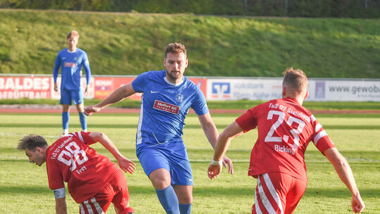 Dreh- und Angelpunkt der SG Eintracht Bad Kreuznach gegen den TuS Steinbach: Ilker Yüksel (blaues Trikot) strukturierte das Spiel der Gastgeber. Klaus Castor
