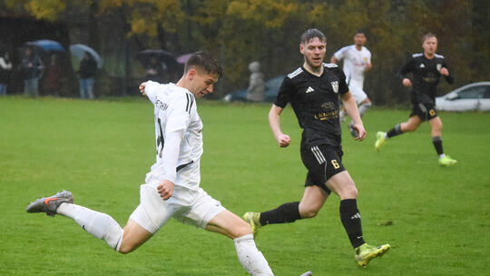 Seit Wochen in starker Form: Leon Bock (weißes Trikot, im Duell mit einem Winterbacher) ist auch gegen den SV Hinterweidenthal gefordert. Klaus Castor