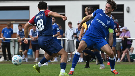 Mudersbachs Kapitän Mathis Füllengraben (rechts, hier im Spiel gegen Kierspe) traf zum zwischenzeitlichen Ausgleich der SG. Manfred Böhmer/balu
