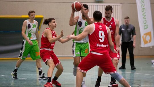 Im Hinspiel hatten die Treis-Kardener um Norman Klima wenig Mühe mit den Ensdorfern (rote Trikots) und siegten klar mit 90:52. So einfach dürfte es am heutigen Samstag nicht mehr werden beim Rückspiel. Klima wird dabei sein, Johannes von Ritter (links) fehlt. Foto: Sascha Berkele Sascha Berkele