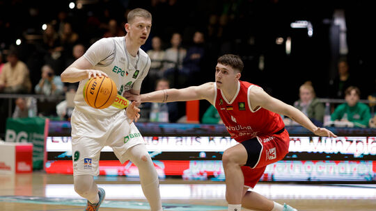 „Der Standort bietet auf jeden Fall einiges. Die Möglichkeit des Aufstiegs ist definitiv gegeben. Das ist ein Prozess und an einen solchen muss man eben auch glauben." Sagt Jonas Niedermanner (am Ball) von den Koblenzer Baskets. Wolfgang Heil