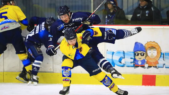 Tim Cornelißen (blaues Trikot) und der EHC Neuwied legten gegen die Eisadler Dortmund einen starken Auftritt hin. René Weiss