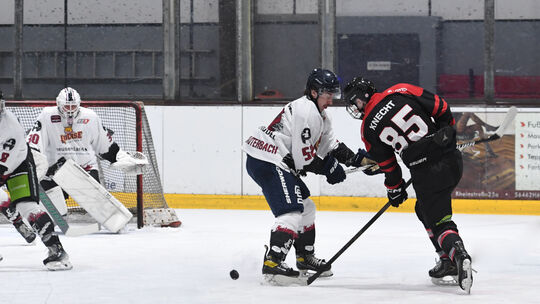 Otis Knecht (rechts) brachte die EGDL beim vorentscheidenden Pokalspiel in Lauterbach zwar mit 2:1 in Führung, doch letztlich hatten die Luchse die besseren Argumente. Andreas Hergenhahn