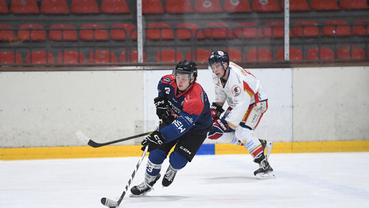 Hohe Hürden haben David Lademann (am Puck) und Co. am Wochenende zu nehmen. Am Freitag kommt mit den Snackpoint Eaters der Spitzenreiter an den Heckenweg, dann wartet der Meister. Andreas Hergenhahn
