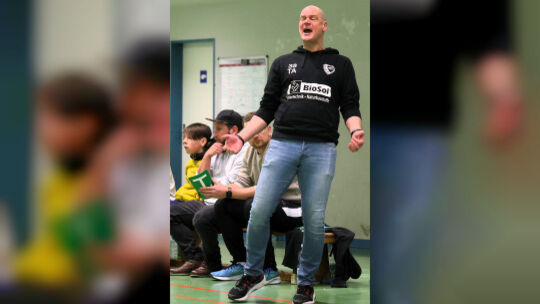 Tobias Arenz fiebert an der Seitenlinie mit. Der Trainer des TuS Weibern unterlag mit seiner Mannschaft zuletzt trotz guter Leistung gegen HB Mülheim-Urmitz II 24:25, nun ist der Tabellenzweite HC Koblenz zu Gast in der Eifel. Jörg Niebergall