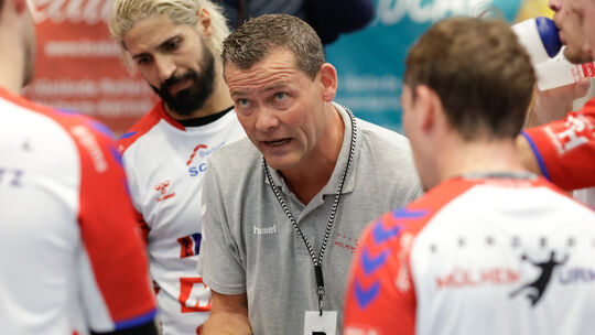 Der Mülheim-Urmitzer Trainer Hilmar Bjarnason (Mitte) zeigt seinen Spielern die Taktik – zuletzt erfolgreich beim 39:36-Sieg in Nieder-Olm. Ob es zu Hause am Sonntag gegen Friesenheim III erneut funktioniert? Foto: Wolfgang Heil Wolfgang Heil