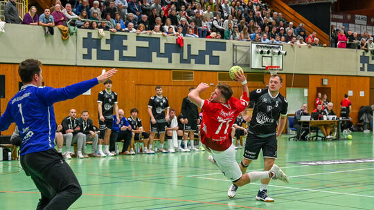 Nicht zu halten: Kastellaun/Simmerns Kreisläufer Nicolas Friedrich (beim Wurf) erzielte sechs Tore beim wichtigen 30:22-Heimsieg gegen den TuS Kaiserslautern-Dansenberg. Mark Dieler
