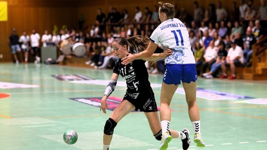 Jule Kappes (links) markierte erst nach sieben Minuten das erste Tor für die HSG Hunsrück im Heimspiel in Kleinich gegen die Südpfalz Tiger Ottersheim, danach lief es für die Irmenach/Gösenrotherinnen aber wie am Schnürchen beim 33:21-Erfolg. B&P Schmitt. B&P S