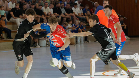 Während die Handballer von HB Mülheim-Urmitz II (in Blau-Rot) zu Hause gegen Daun spielen, gastiert der HV Vallendar II (in Schwarz) in Bad Ems. Wolfgang Heil