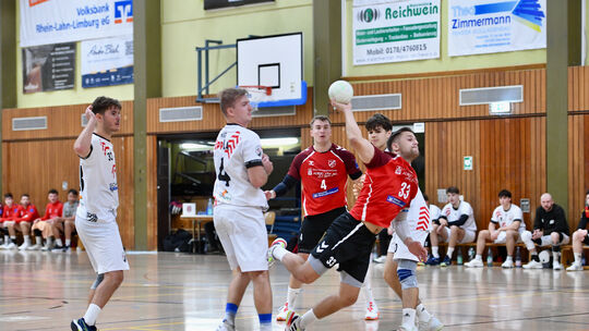 Paul Bährens (am Ball, im Hintergrund lauert Laurin Moos) peilt mit dem TuS Holzheim am Sonntag in Langenhain den zehnten Saisonsieg an, um für das nach einer dreiwöchigen Pause folgende Heimspiel gegen Spitzenreiter HSG Linden kräftig die Werbetrommel zu rühren. Andreas Hergenhahn