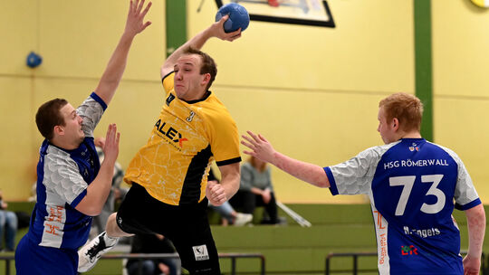Niklas Scholz (in Gelb) und sein SSV Wissen wollen das Spitzenspiel beim TV Bad Ems II gewinnen, um zu zeigen, dass sie das Zeug dazu haben, ganz oben mitzuspielen. Manfred Böhmer/balu
