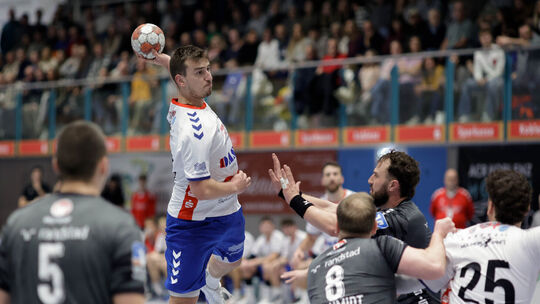 Während die Mülheim-Urmitzer Handballer (am Ball Tim Hemmerle) im letzten Spiel des Jahres daheim die HF Illtal empfangen, gastiert der HV Vallendar (graue Trikots) beim TuS Dansenberg. Wolfgang Heil
