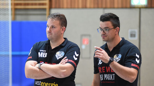 Mächtig stolz sind Mark Bertram (links) und Jeremias Christmann, die Trainer der HSG Nahe-Glan, auf ihre Mannen, die sich dank einer starken zweiten Hälfte den Sieg verdienten. Klaus Castor