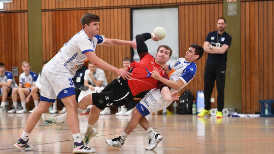 Der TuS Holzheim hat ein richtungsweisendes Spiel in der Handball-Oberliga Hessen Mitte deutlich für sich entschieden. Durch den 30:23 (13:11)-Heimsieg gegen die Zweitvertretung der TSG Münster bleibt der Regionalliga-Absteiger in der Tabelle vorn dabei.