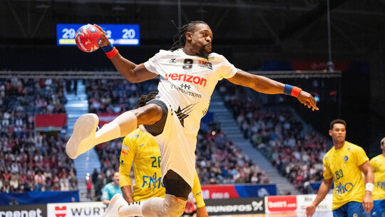 Vor einem Jahr spielte Gary Hines (am Ball) noch für die USA (hier gegen Brasilien) bei der Weltmeisterschaft, ab jetzt steht er im Kader des Regionalligisten HV Vallendar. IMAGO/Gonzales Photo/Jan-Erik Eriksen. IMAGO/Gonzales Photo