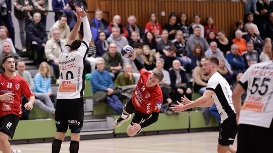 Gegen diese Dynamik von Christian Schröder (am Ball) ist kein Kraut gewachsen – der Vallendarer Rückraumspieler war beim 32:26-Heimsieg des HVV gegen die Handballfreunde Illtal mit neun Treffern bester Schütze. Durch den dritten Erfolg hintereinander hat sich Vallendar im oberen Drittel der Oberliga Rheinland-Pfalz/Saar festgesetzt. Foto: Wolfgang Heil Wolfgang Heil