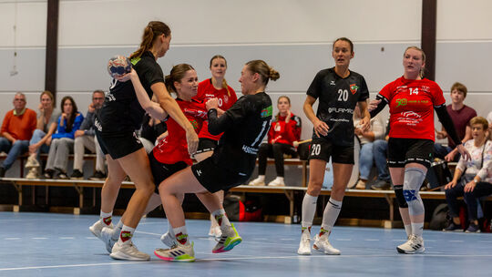 Im Hinspiel gab es für die Wellinger Handballerinnen (rote Trikots) gegen die HSG Kastellaun/Simmern kaum ein Durchkommen und eine klare 21:27-Niederlage. Nun gastieren die TVW-Frauen im Hunsrück und sinnen auf Revanche. HetPix Fotodesign. HetPix