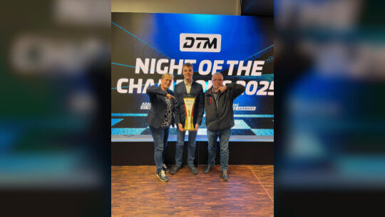 Ehrung für den Gewinn der Rookie-Wertung in der ADAC GT4 Germany im Rahmen der DTM-Nacht der Champions: Der 19-jährige Cedric Fuchs aus Holzappel mit seinen Eltern Heike und Thomas und dem begehrten Pokal. Jürgen Hahn