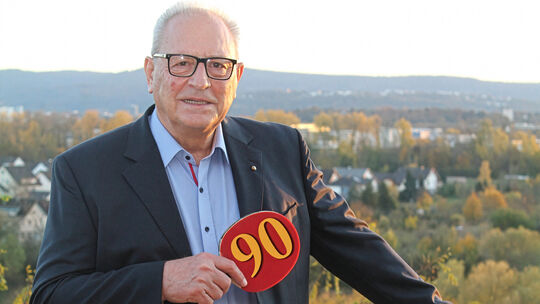 Die 90 auf dem Tischtennisschläger: Aus der einstigen Idee eines 16-Jährigen wurde Manfred Gstettners sportliches Lebenswerk. Sein TTC Zugbrücke Grenzau ist einer der renommiertesten Vereine Europas. Annette Hartmann/TTC Grenzau
