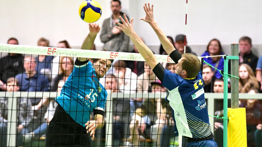 Alexander Krippes (links) gibt nicht nur als Trainer die Richtung vor, sondern ist auch als Spieler mit reichlich Zweitliga-Erfahrung ein absoluter Leistungsträger bei den Westerwald Volleys. Foto: Andreas Hergenhahn Andreas Hergenhahn