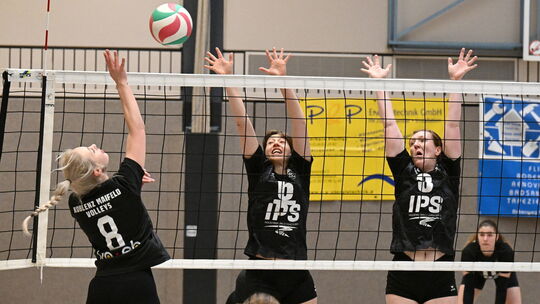 Beim ersten Saisonsieg gegen die SG Koblenz-Maifeld-Volleys II stand der Etzbacher Block (hier von links Melissa Hess, Janina Gerhards) meist gut, sodass der Erfolg am Ende heraussprang. Daran wollen sie auswärts anknüpfen. Jürgen Augst/byJogi