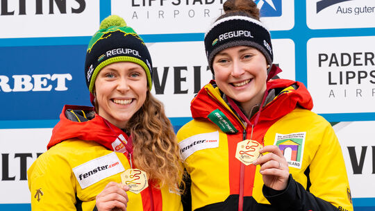Gemeinsam mit Anschieberin Lena Brunnhübner (rechts) gewann Bobpilotin Charlotte Candrix aus Alpenrod (links) in Winterberg die Junioren-Euopameisterschaft. Es war der erste gemeinsame Titel der beiden. Lukas Gerke