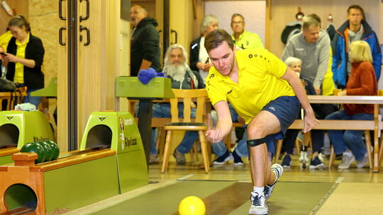 Neben Matthias Bender war einmal mehr Ferdinand Fuchss für den Start der Hunsrücker zuständig. Doch beide bekamen direkt mächtig Gegenwind der Gäste, insbesondere Niklas Kleinlosen (899/11) spielte stark. Das Glück der Hausherren: Frank Kremer (838/3) fand überraschend wenig Mittel für die Kirchberger Bahn. Die Hausherren spielten sich im weiteren Verlauf wieder ins Rennen und besonders Fuchss nahm noch einmal die Verfolgung von Kleinlosen auf. Doch am Ende behielt der Düsseldorfer die Nerven und setzte sich gegen Fuchss, der mit 890/10 endlich mal an der 900 Holz-Marke kratzte, durch. Bender kam auf 884/8 und brachte seine Mannschaft damit zwar in Führung, der Abstand zu den Gästen war allerdings alles andere als komfortabel.