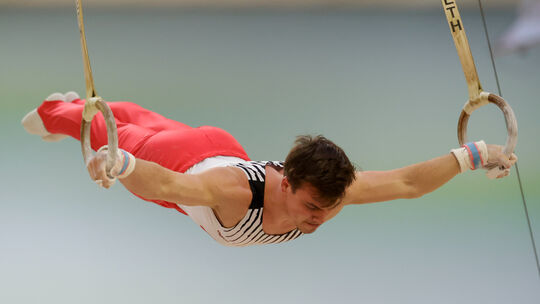 Ein Sonderlob gab es für den Koblenzer Louis Heil (hier an den Ringen) von KTV-Trainer Ralf Schall: „Louis hat hat sein Potenzial super ins Team eingebracht." Wolfgang Heil