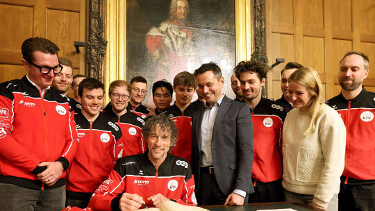 Kunstturn-Bundesliga-Fieber in Koblenz: Die KTV trägt sich nach dem Aufstieg ins Goldene Buch der Stadt ein – und OB David Langner schwärmt von einem „tollen Team“.