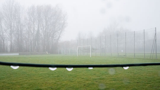 Ein verlassener Fußballplatz eines Amateurvereins bei Nebel. Symbolbild. picture alliance/dpa | Julian St