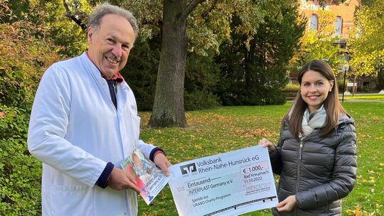 Seit knapp zwei Jahren läuft das Urano Charity-Programm, jetzt profitiert bereits die zehnte karitative Initiative davon: Dr. André Borsche, Chefarzt der Plastischen Chirurgie am Diakonie Krankenhaus in Bad Kreuznach, freut sich über die Spende von 1000 Euro für seine Hilfsorganisation Interplast.